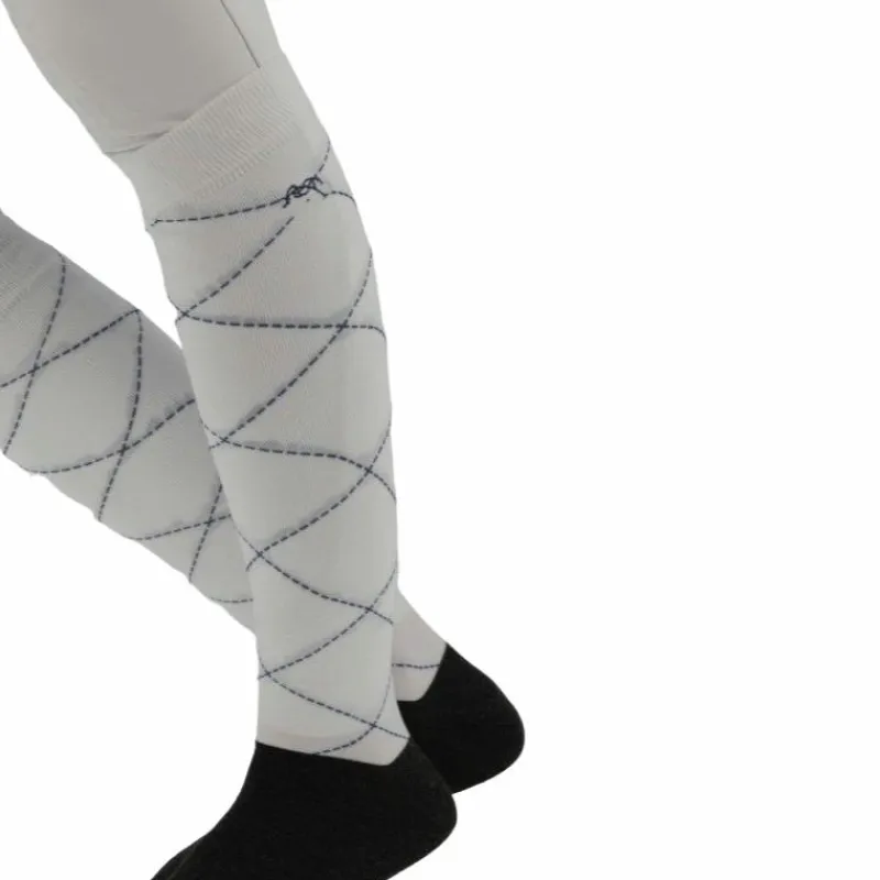 - Lot de deux paires de chaussettes avec une paire à croisillons et une paire unieUne paire en croisillon crème sur fond noir et une paire noire unie avec un liseré bleu blanc rouge.