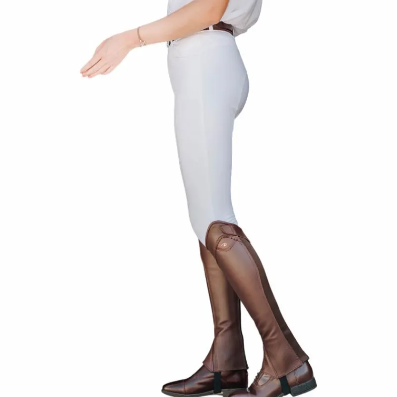 • Élastique à l’arrière de la jambe, les élastiques sous le genou et sous les pieds offrent souplesse et adaptabilité aux mouvements du cavalier