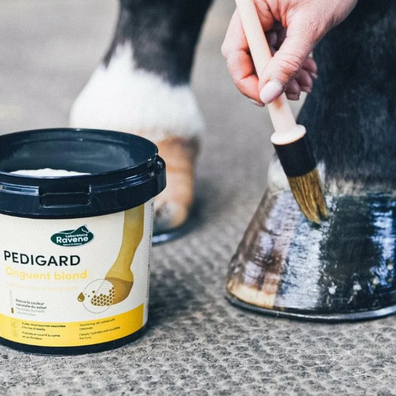 Appliquer PEDIGARD Onguent blond sur la paroi externe du pied lors de vos soins quotidiens. Vous pouvez aussi l’appliquer également sur la sole et la fourchette si celles-ci sont parfaitement sèches et saines. Bien refermer après emploi.