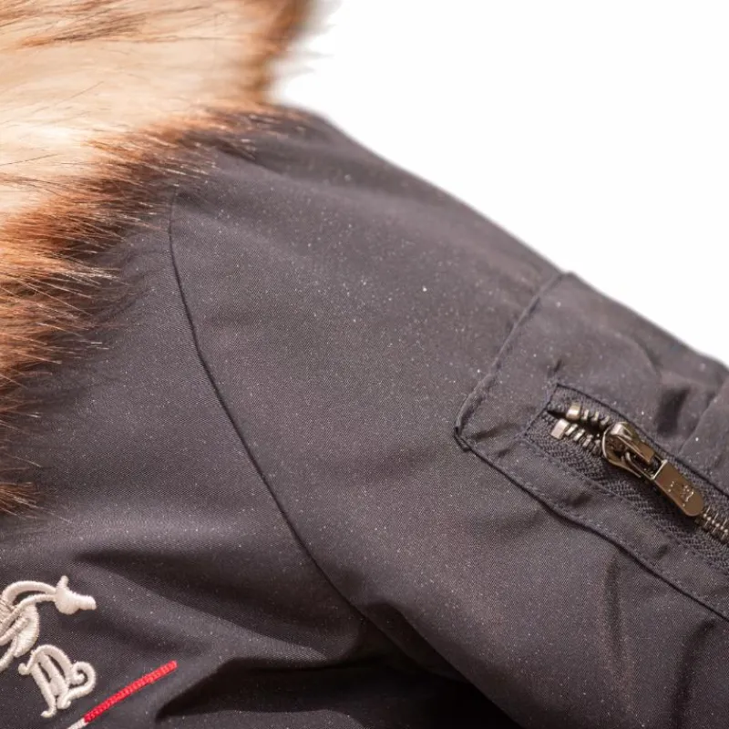 • Mêmes caractéristiques que la version adulte, toujours doublé en polaire ultra-douce, avec une large capuche entourée de fausse fourrure