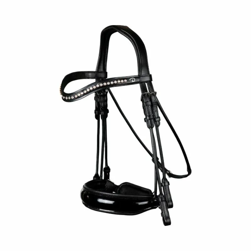 • Bride avec muserolle large vernie en cuir