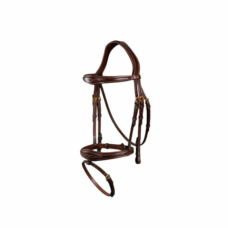 • Frontal et muserolle élargis au centre, légèrement bombés avec surpiqûre décorative
