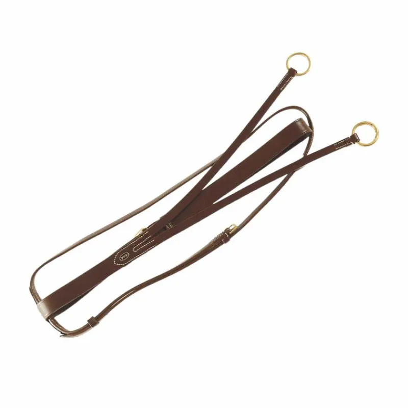 • La martingale à anneaux n’a pas pour but de faire baisser la tête du cheval, mais de l’empêcher de donner des coups de tête.