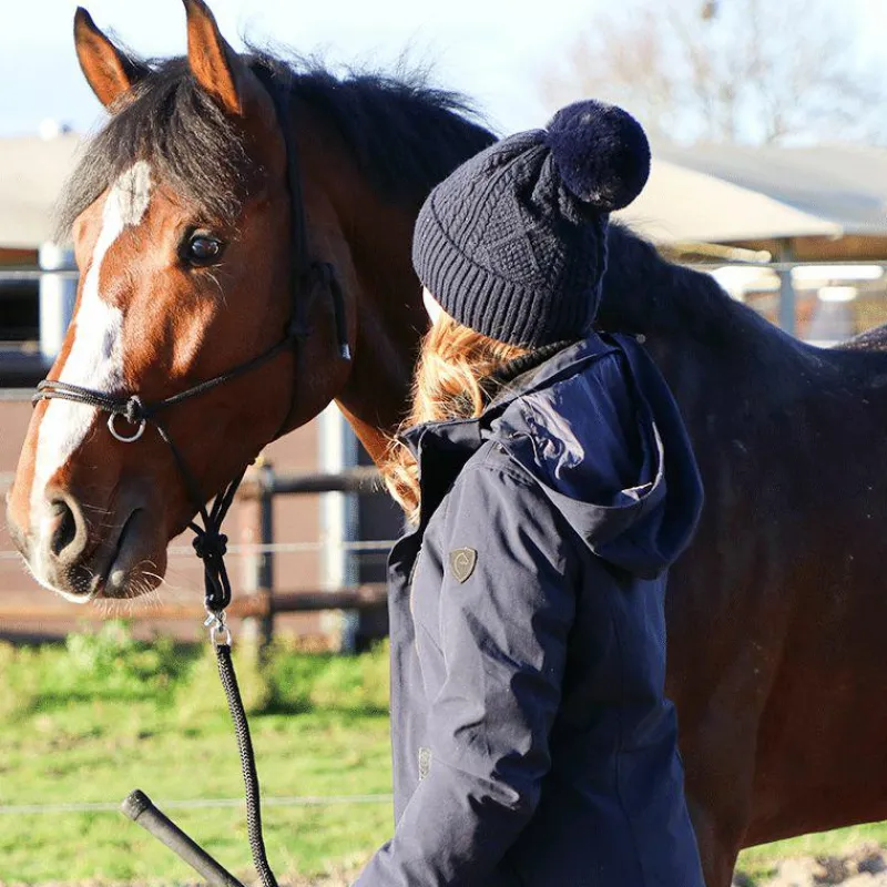 - Licol éthologique pré-noué en polypropylène équipé de 2 anneaux en acier chromé sur la muserolle pour fixer les rênes