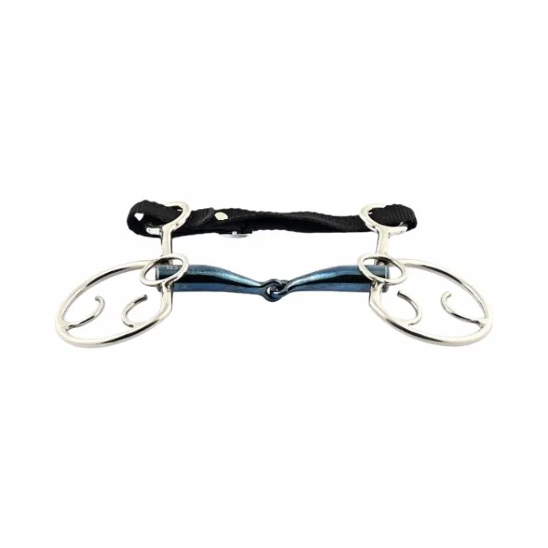 - Le mors Goyo Aga s’utilise avec une gourmette. Il se présente comme un mors classique mais les anneaux sont en forme de demi-lune munies d’encoches sur lesquelles on vient fixer les rênes.