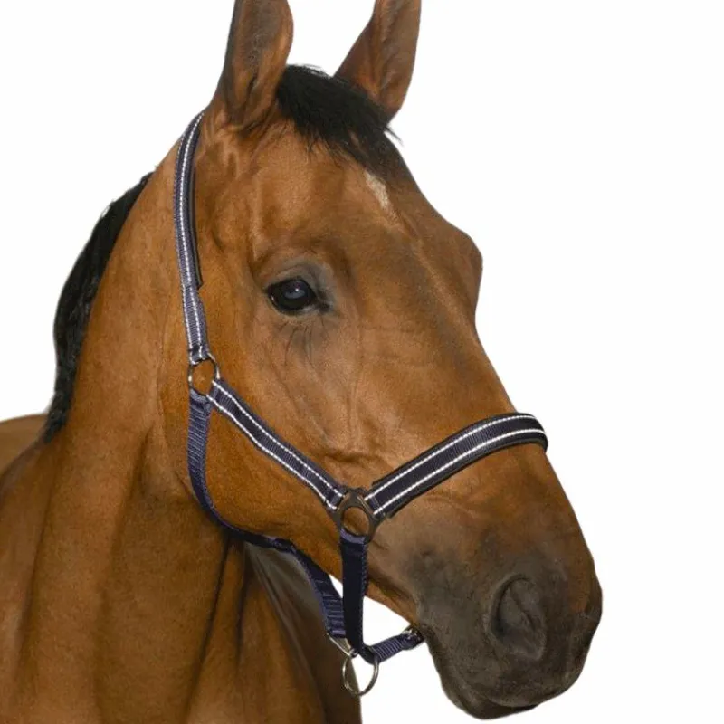 - Licol en polypropylène double épaisseur, doublé en néoprène, décoré de fil réflectif.