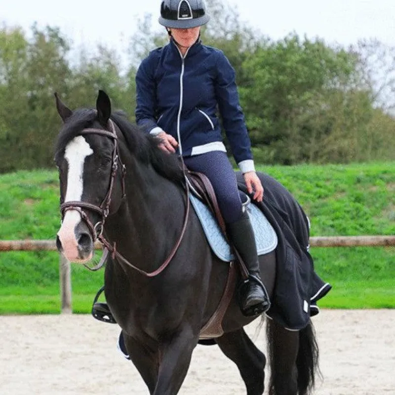 - Déperlant, sans capuche (pour pouvoir aussi monter au paddock avec !),