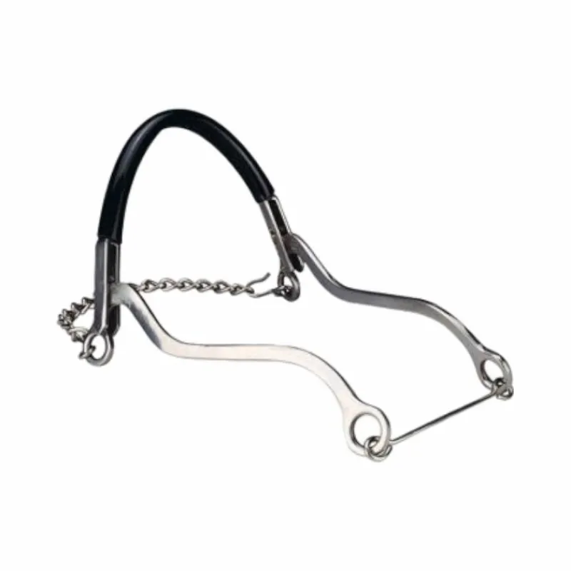 - C’est une embouchure assez sévère et difficile à utiliser pour certains cavaliers car il faut garder le contact sur les deux rênes en même temps. Si on tourne sur une seule rêne, le hackamore tourne… mais pas le cheval. Pour autant, avec des branches courtes et du confort au niveau de la muserolle, il peut donner une sensation de tension dans le contact, ce qui peut être appréciable avec certains chevaux délicats.