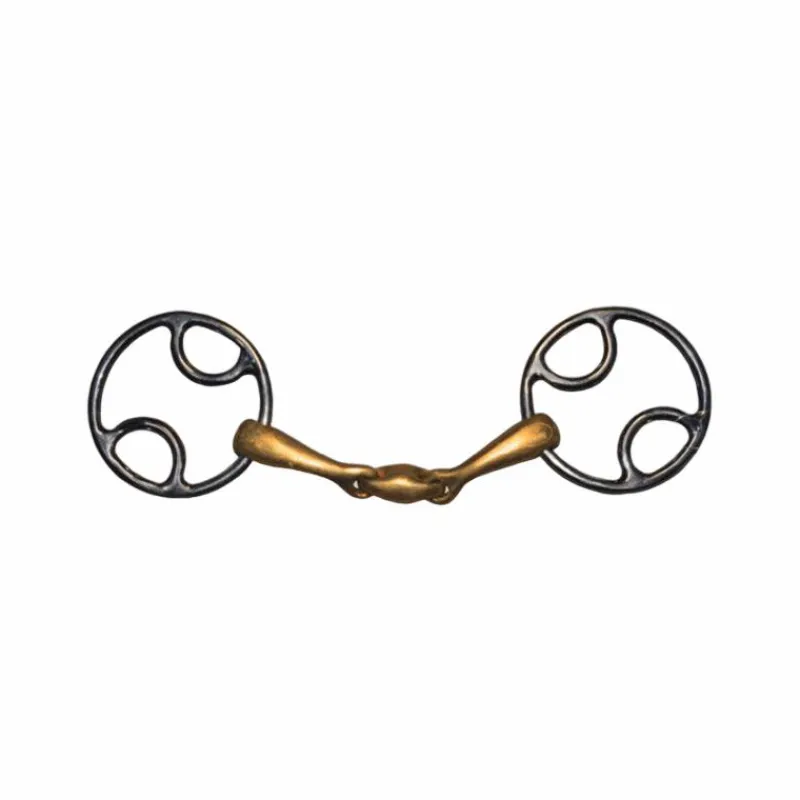 - Embouchure dont l’action est intensifiées selon la positionne la rêne, c’est la combinaison de 3 mors en 1 seul : encadrement latéral, effet de levier et effet de releveur