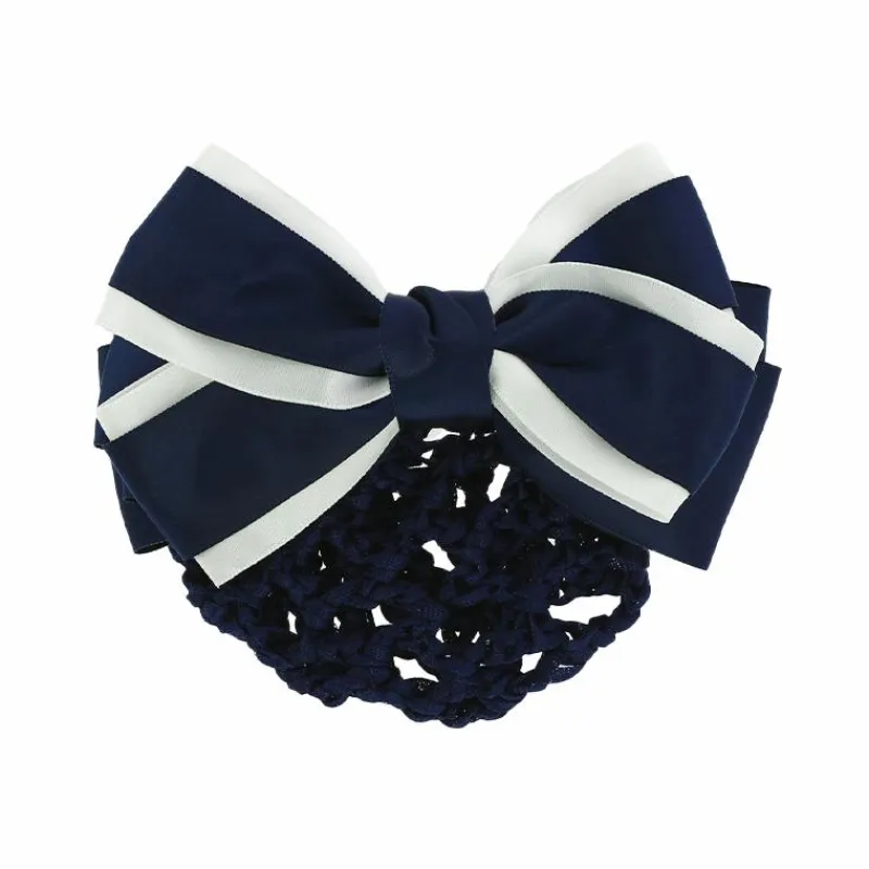 • Décorée d’un double noeud en satin bleu marine et blanc