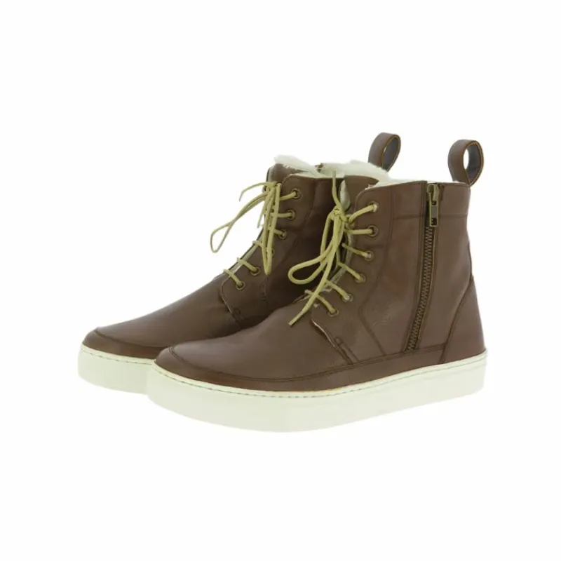 - En synthétique, entièrement doublé en mouton synthétique. Fermeture à lacets sur l’avant et fermeture à glissière métallique YKK sur le coté extérieur.
