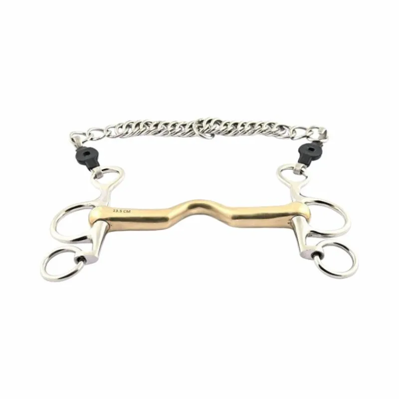Le pelham peut être utilisé avec 2 ou 4 rênes. De même, il est possible de l’utiliser sans gourmette pour adoucir son action sur la bouche.