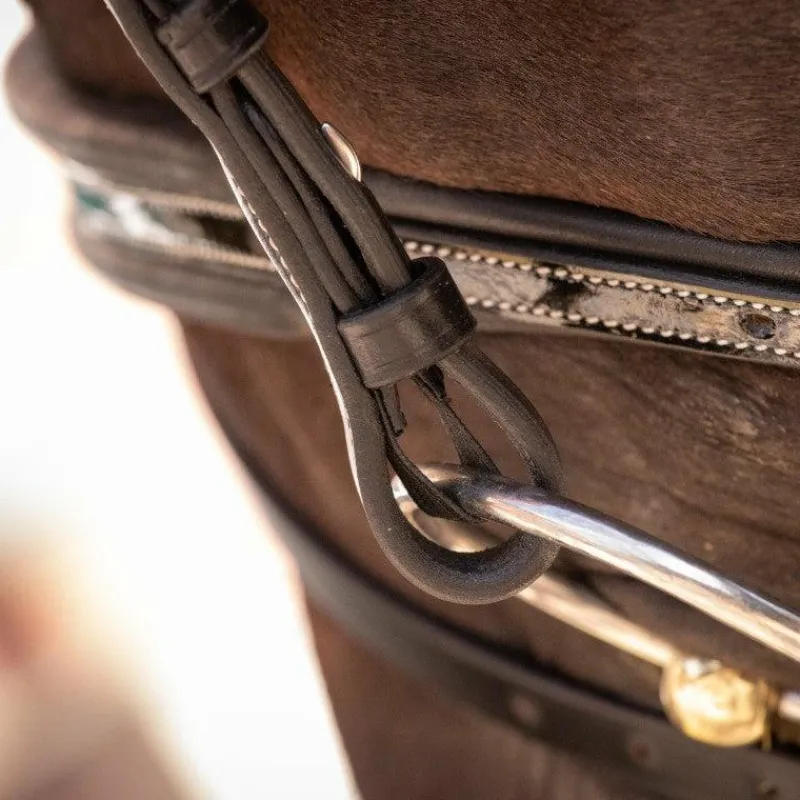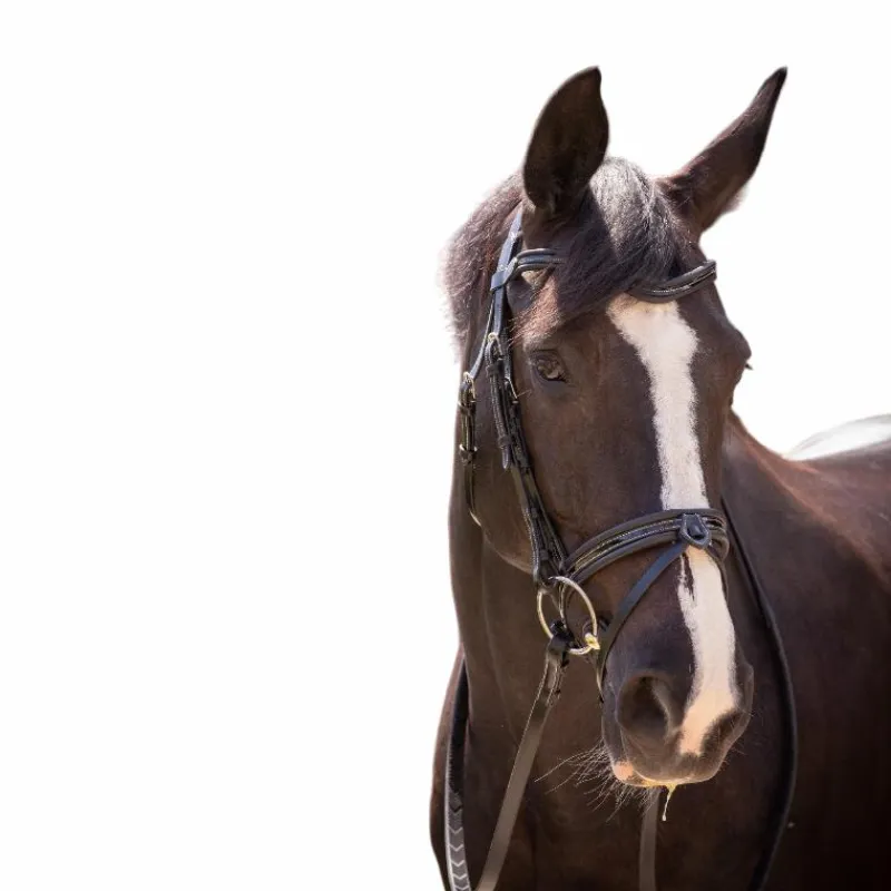 - Extrémités doublés d’un élastique au niveau des montants et des rênes pour offrir plus de confort au cheval.