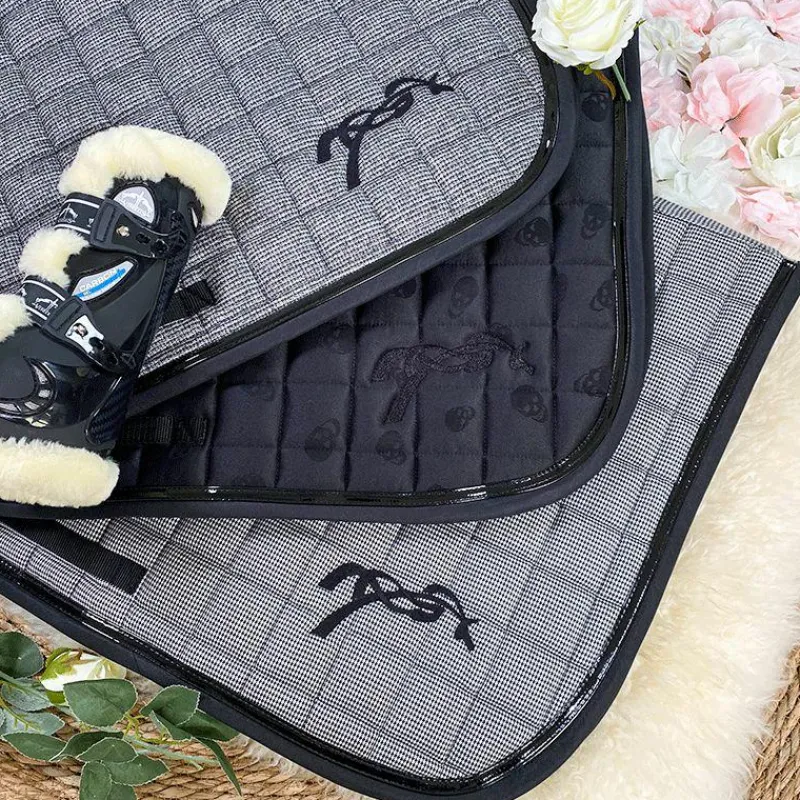 - Ce tapis est doté d’une belle découpe de dos qui perme un dégarottage optimal et facile. Il a aussi un passant de sangle de chaque côté pour améliorer la fixité du tapis sur le dos du cheval et un joli tissu nid d’abeille sert de doublure pour absorber la transpiration.