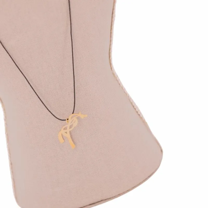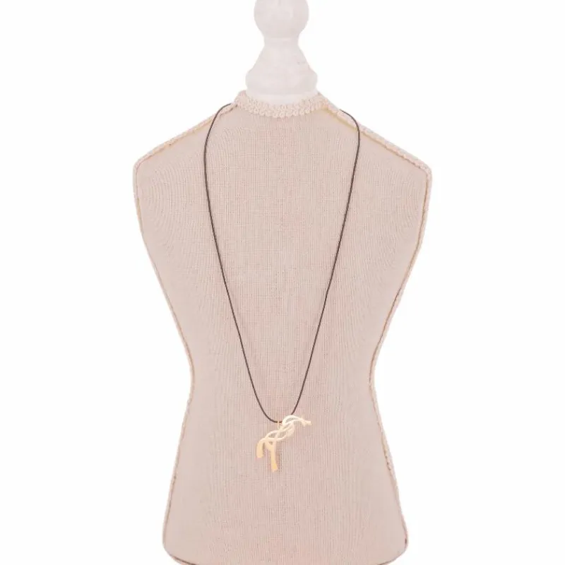 • Collier équestre doré, suspendu à un fil de coton noir