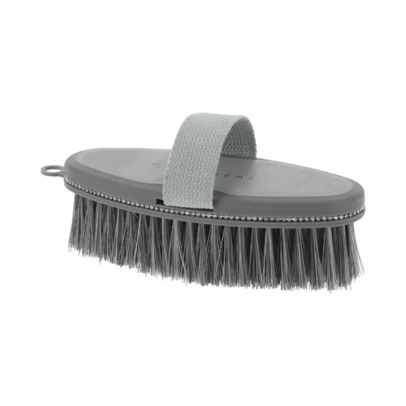 • Brosse douce grise ornée de strass élégante et raffinée de la collection Je T’aime, qui s’utilise en dernière étape du pansage