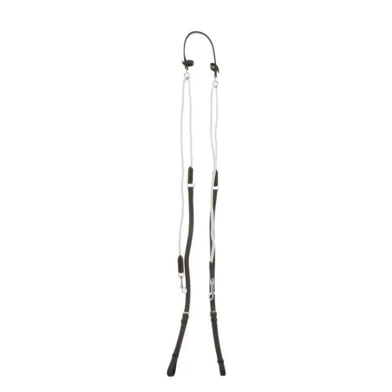 - Enrênement utilisé uniquement pour le travail à la longe – il est destiné à inciter le cheval à orienter son encolure vers le bas et loin devant, sans pour autant le soustraire à l’action du mors.
