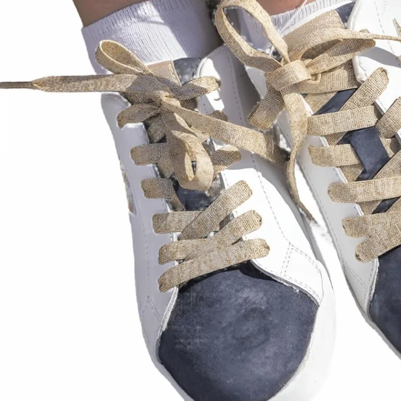 - Elles se lacent grâce à deux types de lacets ( un doré et un marine fourni à part lors de l’achat des baskets) C’est le parfait accessoire à porter avec un jean ou, aux écuries, une fois descendu de cheval, avec un pantalon d’équitation.