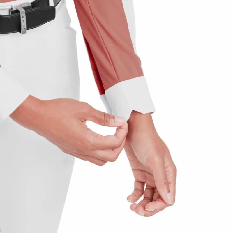 • La forme du poignet et du col a été spécialement étudiée pour libérer les gestes du cavalier en concours