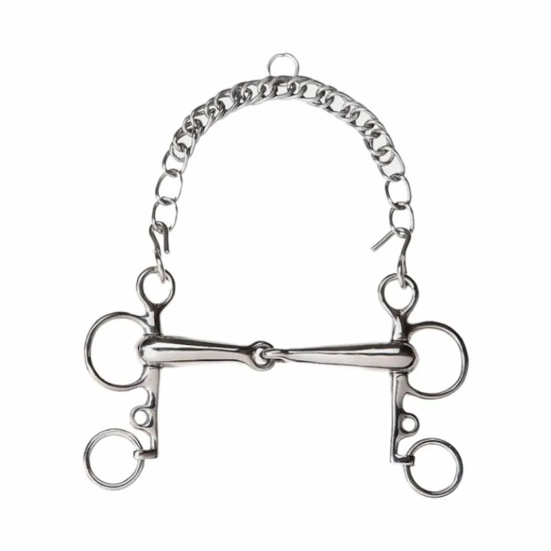 Le pelham peut être utilisé avec 2 ou 4 rênes. De même, il est possible de l’utiliser sans gourmette pour adoucir son action sur la bouche.