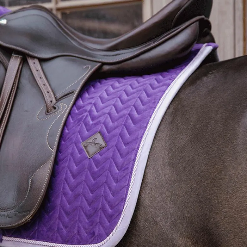 - Le tapis de selle Velvet Contrast est façonné pour le jumping et offre un excellent amorti entre le dos du cheval et la selle tout en protégeant des frottements. Le tapis de selle apportera un look sophistiqué et très classique grâce à sa combinaison de couleurs.