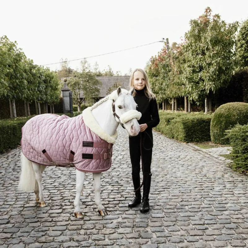 - L’extérieur de la couverture est composé d’un tissu en velours doux et chic et d’une couche matelassée sophistiquée. Grâce à la couche matelassée en « cube », il est beaucoup plus difficile pour les chevaux de déchirer la couverture.