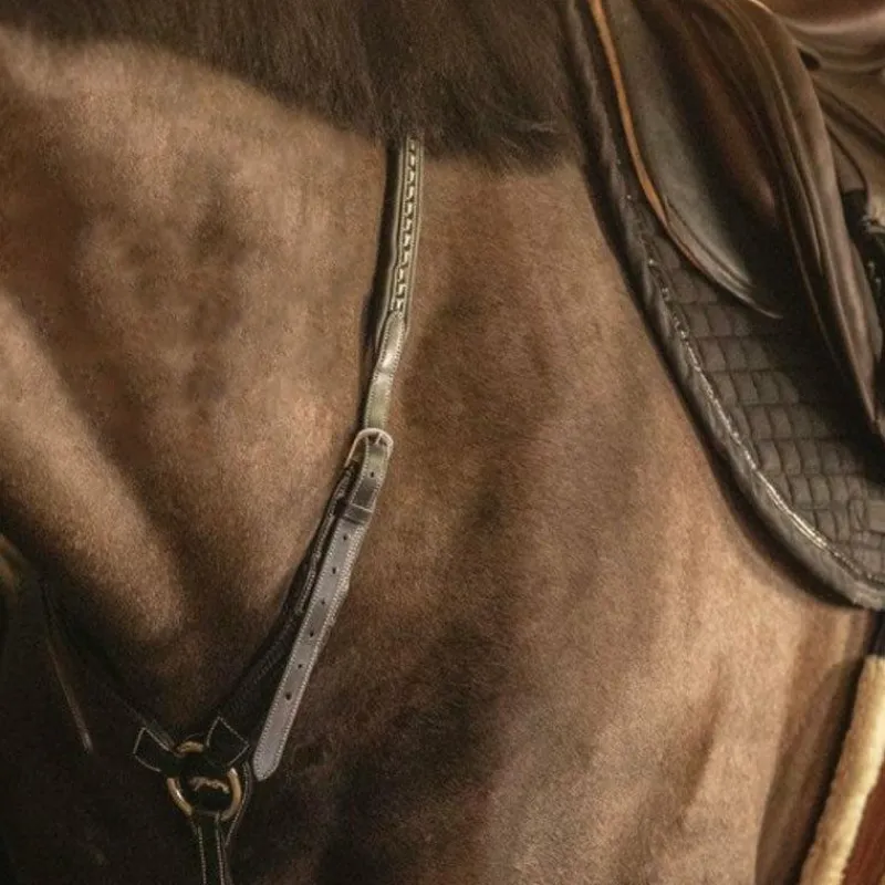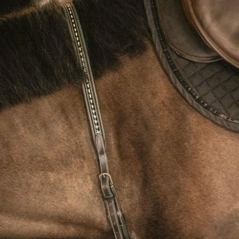 • Le réglage de la partie collier de chasse peut être optimal grâce, notamment, à l’élastique présent au niveau du garrot qui permet de réduire l’espace entre le poitrail et l’attache de la sangle et offrant également un ajustement idéal à votre cheval