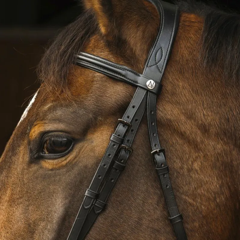 • Frontal et muserolle doublés en cuir de vachette