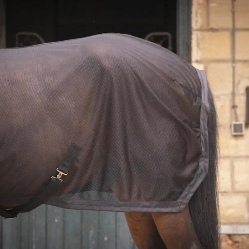 • Tissu aéré au maillage fin contribuant fortement à évacuer la transpiration du cheval après le travail et favorise également la récupération