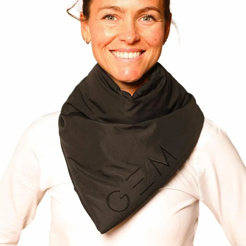 • Logo GEM ton sur ton sur le bord de l’écharpe