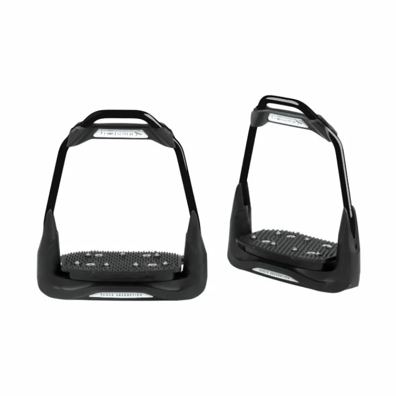 Connue pour son innovation et son expertise, Freejump propose des étriers de haute qualité qui allient performance, confort et sécurité. Les étriers Freejump se distinguent par leur système de dégagement rapide unique, permettant au cavalier de libérer facilement son pied en cas de chute ou d’urgence. Ce mécanisme innovant offre une tranquillité d’esprit et une protection supplémentaire lors de la pratique équestre. Les étriers Freejump sont conçus avec une plateforme large et antidérapante, offrant une excellente adhérence et une stabilité optimale pendant l’équitation. De plus, ils intègrent un système d’amortissement des chocs pour réduire la pression sur les articulations du cavalier. Freejump propose également une variété de modèles et de designs pour répondre aux préférences individuelles des cavaliers.