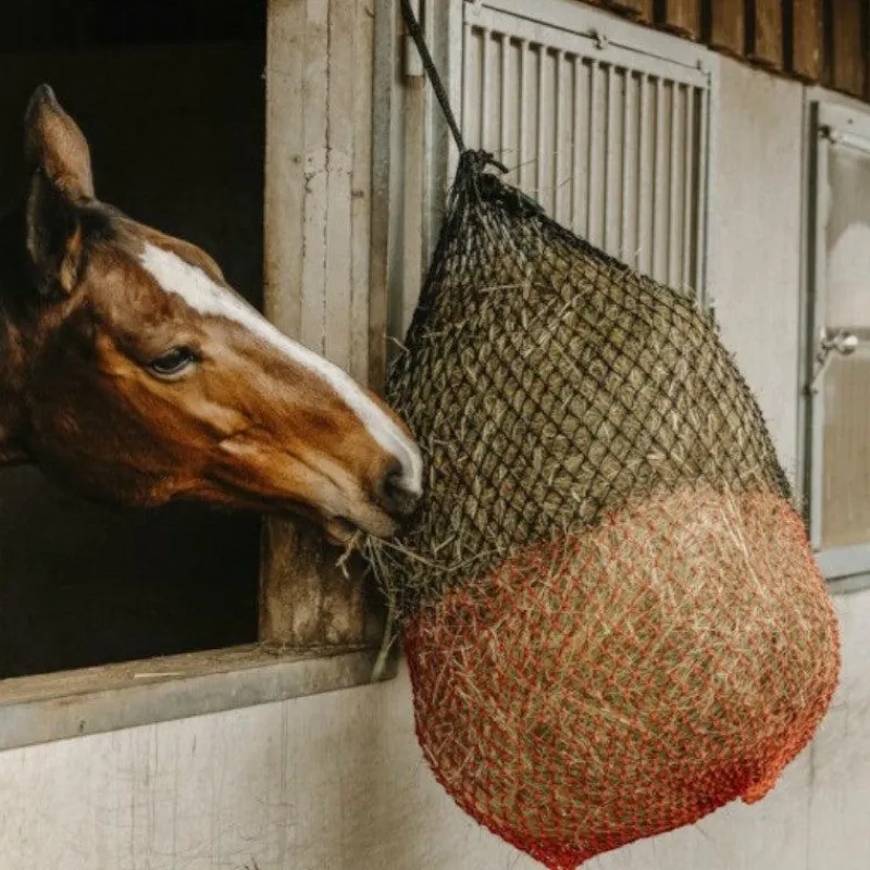 • Maille de diamètre d’environ 3 cm favorisant une distribution contrôlée et une consommation lente du foin