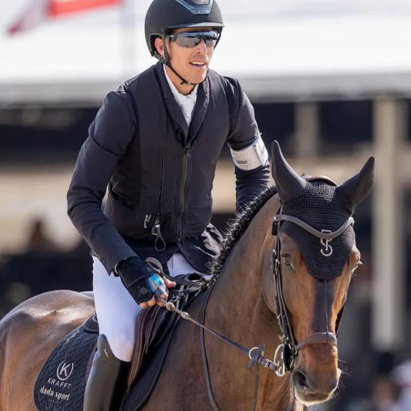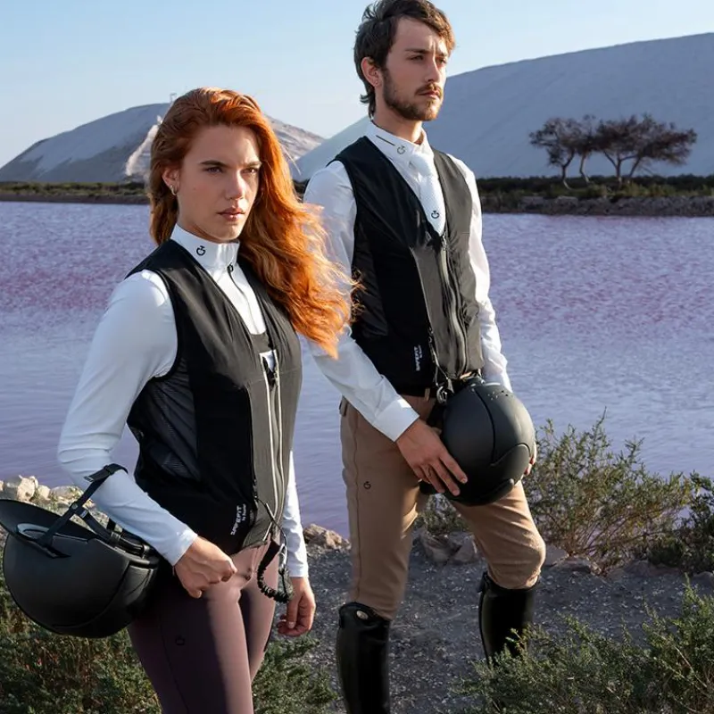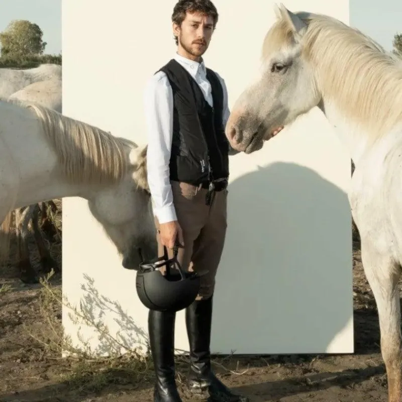 - Une veste de concours, pour être compatible airbag, doit comporter un minimum de 15% d’élasthanne dans sa composition