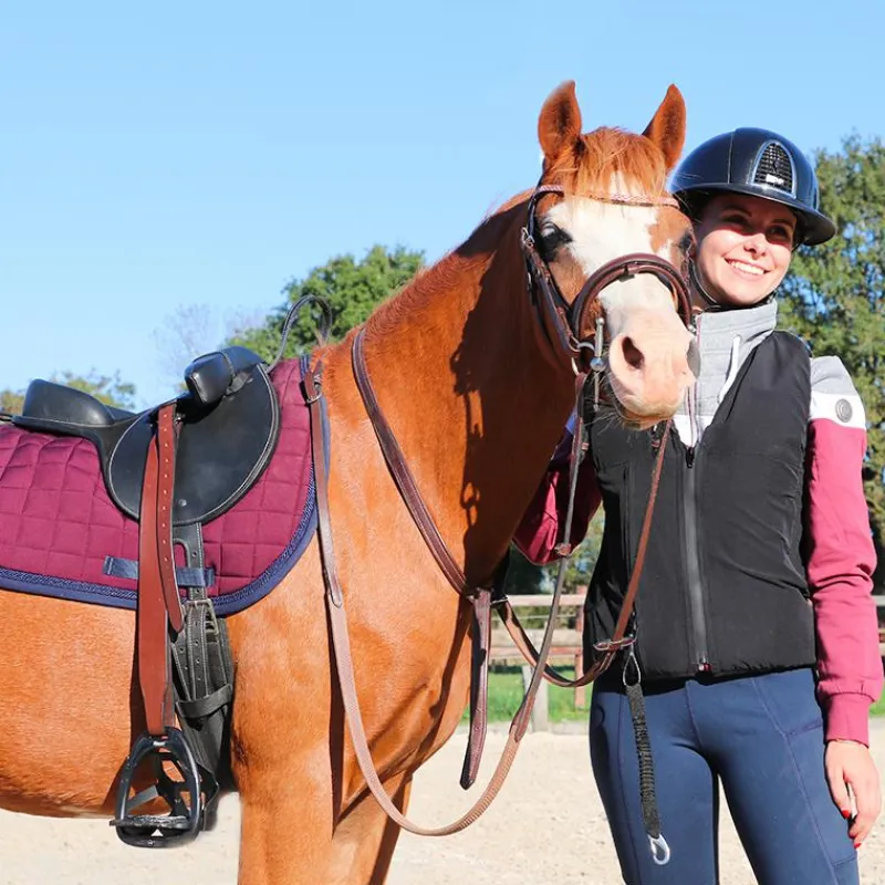Normes : SAFEFIT est certifié par le laboratoire ALIENOR CERTIFICATION, un organisme reconnu et indépendant qui certifie les équipements de protection pour les cavaliers. (UE2016/425) NF(S72-800:2021).