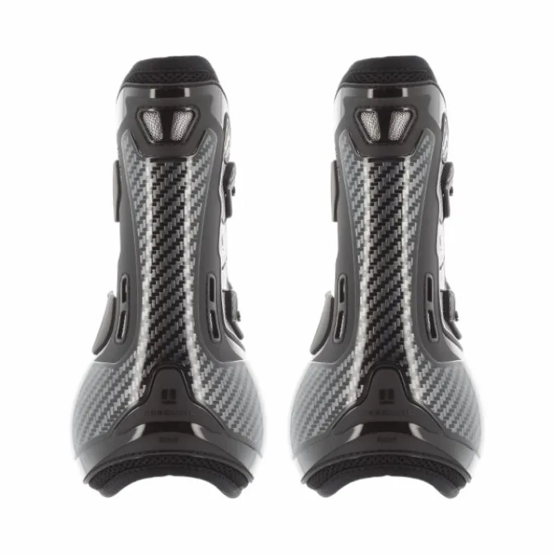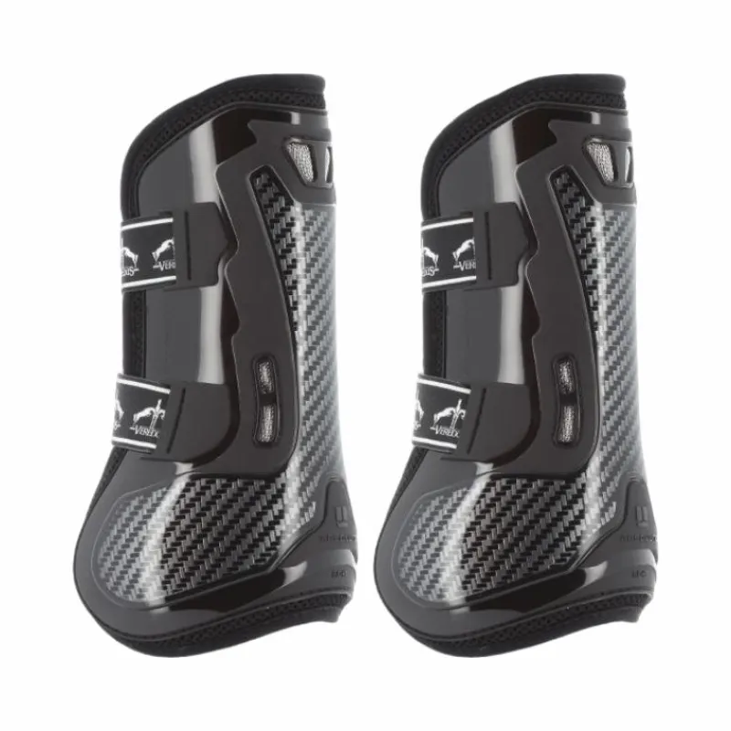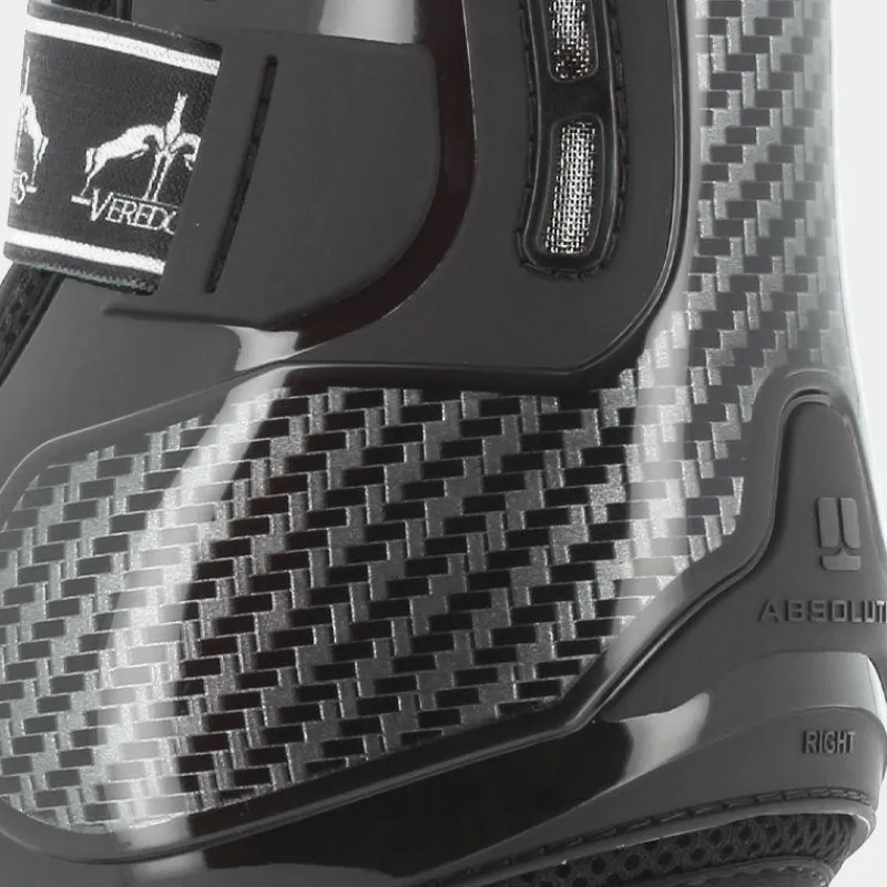 - Veredus a développé un concept de protection totale en étendant la surface de protection en gel et carbone du tendon du fléchisseur jusqu’au boulet, dans une forme innovante en Y inversé.