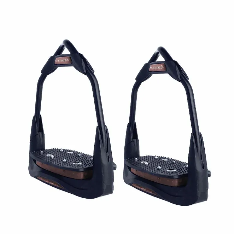 Connue pour son innovation et son expertise, Freejump propose des étriers de haute qualité qui allient performance, confort et sécurité. Les étriers Freejump se distinguent par leur système de dégagement rapide unique, permettant au cavalier de libérer facilement son pied en cas de chute ou d’urgence. Ce mécanisme innovant offre une tranquillité d’esprit et une protection supplémentaire lors de la pratique équestre. Les étriers Freejump sont conçus avec une plateforme large et antidérapante, offrant une excellente adhérence et une stabilité optimale pendant l’équitation. De plus, ils intègrent un système d’amortissement des chocs pour réduire la pression sur les articulations du cavalier. Freejump propose également une variété de modèles et de designs pour répondre aux préférences individuelles des cavaliers.