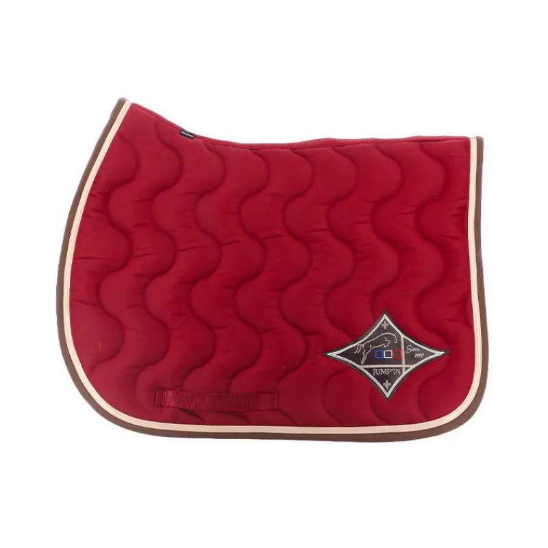 - Tapis de selle Jump’In Bordeaux, galon champagne et bordure choco