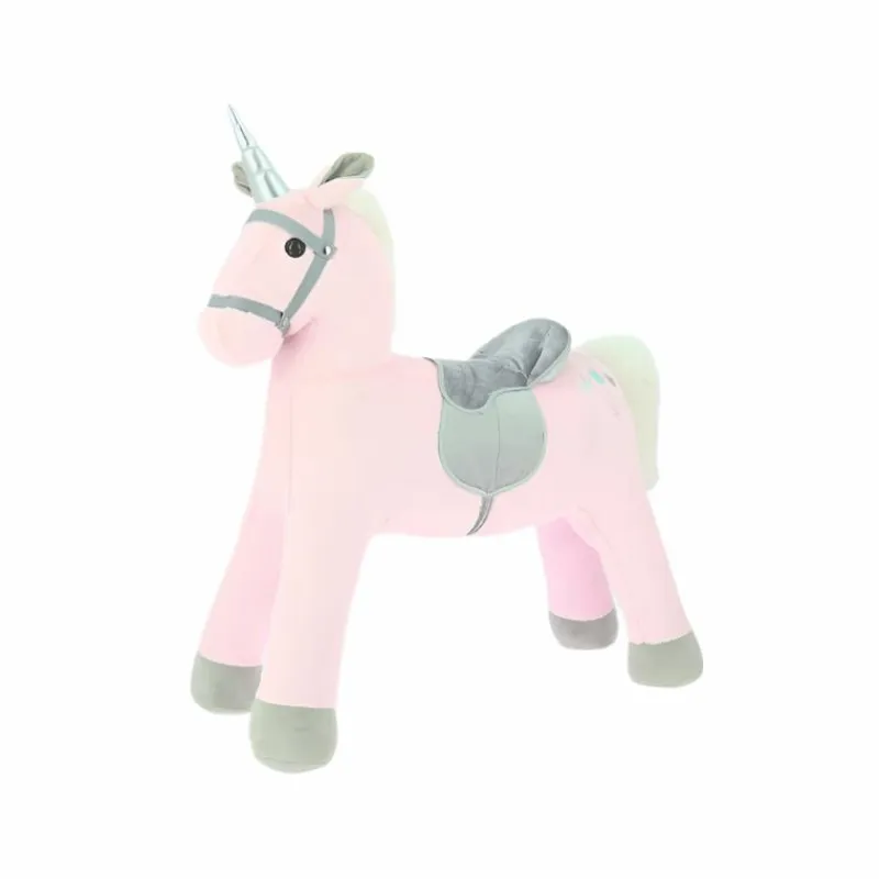 - Peluche debout, pouvant accueillir un jeune cavalier sur son dos grâce à sa selle