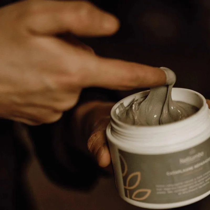 Huile De Ricin**, Oxyde De Zinc*, Eau De Mer *, Argile Verte**, Huiles Essentielles 100% Pures Et Naturelles** (MELALEUCA QUINQUENERVIA OIL, EUCALYPTUS GLOBULUS LEAF OIL, CITRUS LIMON PEEL OIL, THYMUS ZYGIS FLOWER OIL)
