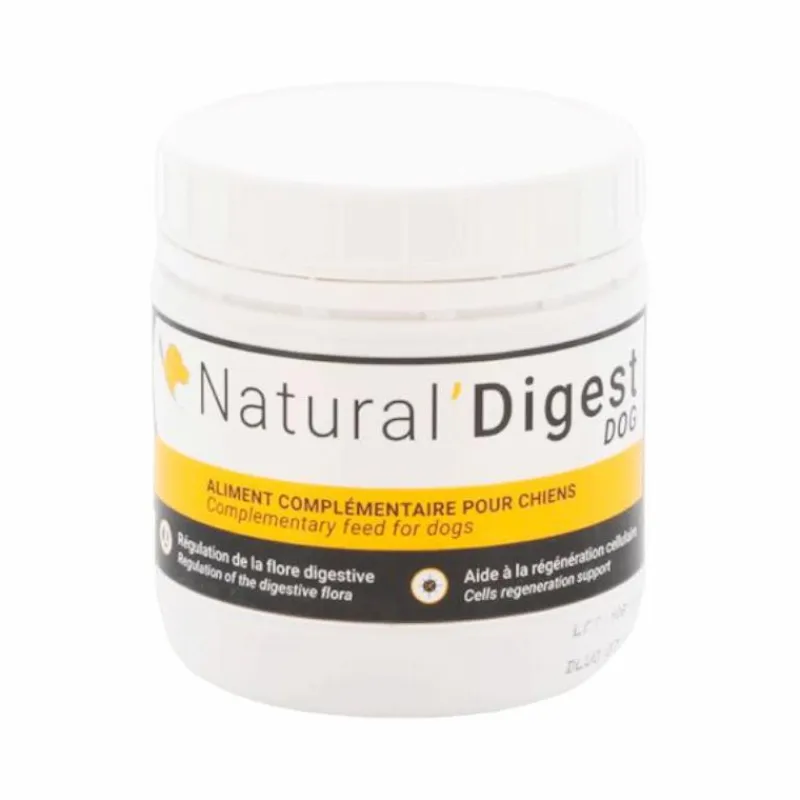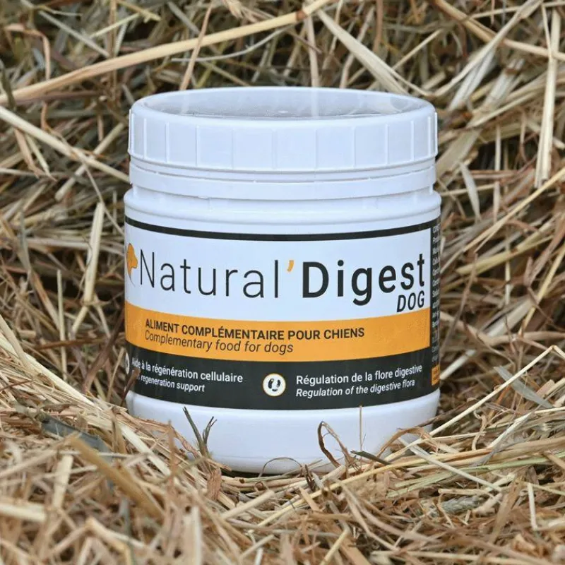 - Natural’Digest DOG soutient la flore intestinale du chien avec des prébiotiques et de l’argile