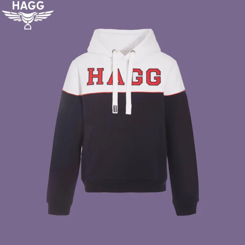 - Logo Hagg blanc, rouge et marine sur la poitrine