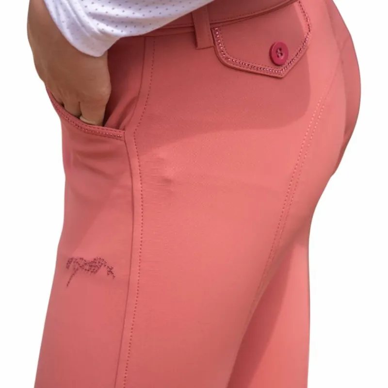• Le pantalon d’équitation Élégance est doté d’un rang de strass sur la sur-ceinture et également le long des deux poches avant et arrière