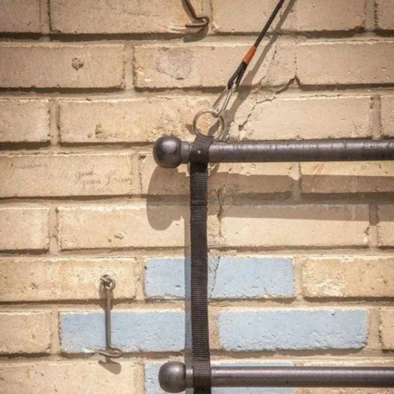 • Porte-tapis qui permet, sur quatre niveaux différents, de suspendre des tapis de selle, couvre-reins, chemises ou couvertures