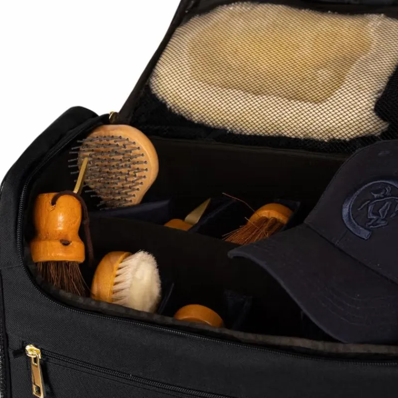 Le matériau extérieur est fabriqué à partir d’un polyester 600D résistant. Ce tissu est solide et facile à entretenir. Les séparateurs et le rabat à l’intérieur du sac de pansage sont constitués d’une doublure lisse repoussant la saleté, le compartiment principal est en polaire douce. Le sac de pansage est assorti aux autres accessoires d’écurie Kentucky.