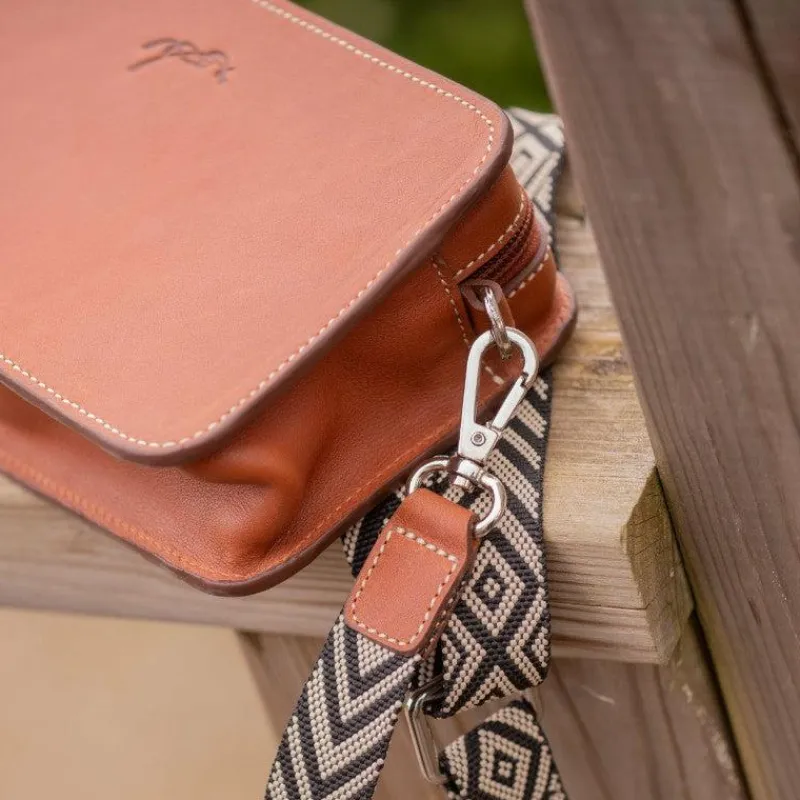 • Bandoulière chevron noir et crème, réglable pour un ajustement parfait