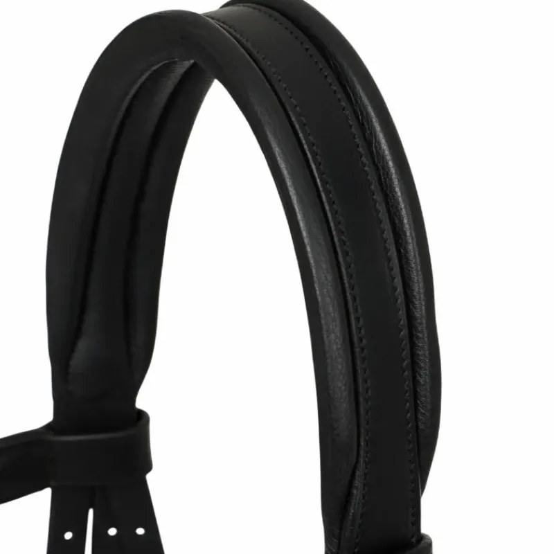 • Frontal anatomique, têtière rembourrée, muserolle découpée pour éviter toute pression sur les zones sensibles