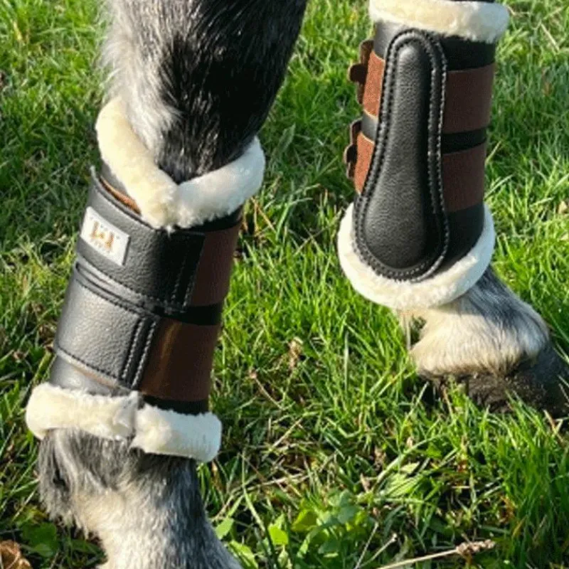 - Guêtres de dressage pour antérieurs en cuir et mouton synthétiques.
