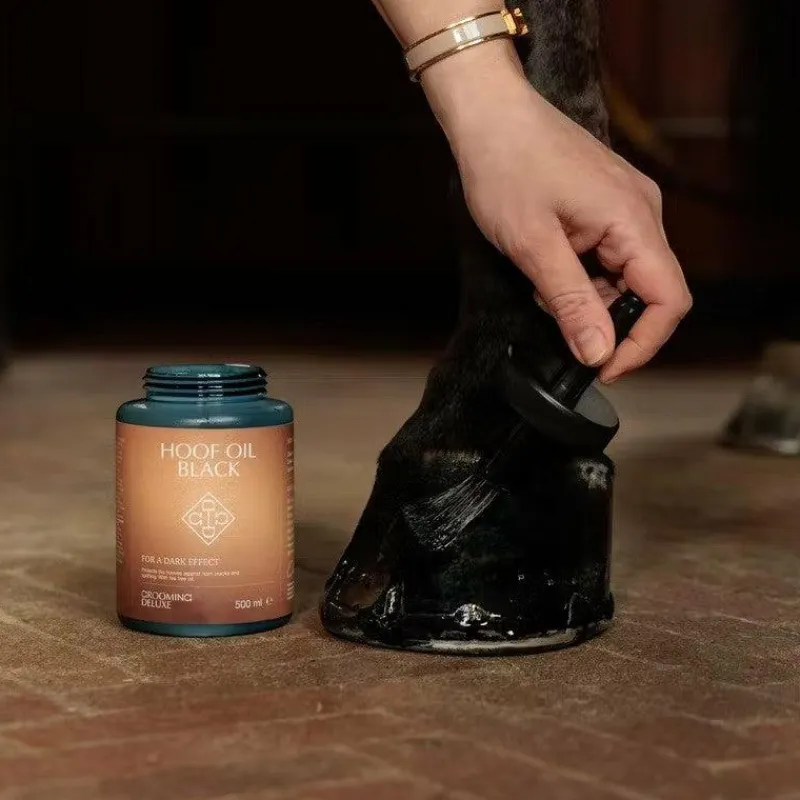 Appliquer Hoof oil black à l’aide du pinceau inclus pour une application uniforme.