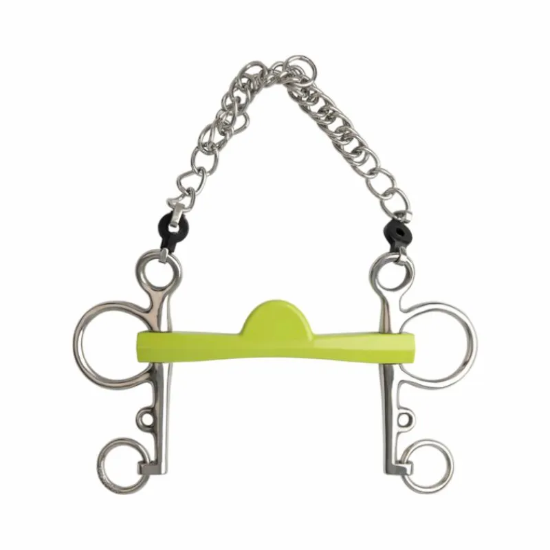 • Partie centrale en forme de demi-lune empêche le cheval de passer sa langue au-dessus du mors