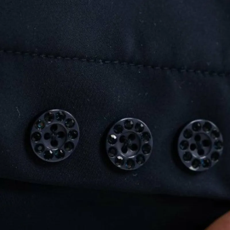 • Fermeture de la veste par un zip et trois boutons strass ton sur ton